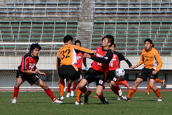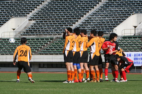 上半時比賽進行到第5分鐘,駒澤大學隊在禁區前沿獲得了一個位置極好的任意球,罰球隊員腳法極刁,一腳將皮球直接射入球門的右上角,率先打開了場上局面。