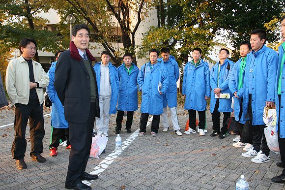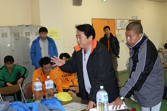 正是這點的不同,導致駒澤大學隊在上半場第35分鐘和第40分鐘,連續兩次利用罰角球的機會頭球破門得分,使得比分變為了3:1。中場休息時,金志揚總教練告誡隊員:由于大部分隊員習慣了國內比賽的較慢節奏,面對這種異常的快節奏和頭球助跑搶點的打法可能心理上準備不足,所以感到極不適應,下半場的比賽一要心理上穩住陣腳,二要進攻中積極拼搶,三要防守時注意站位,總之,我們是報著學習的態度而來,勝敗乃兵家常事,但即使輸球也不能輸人,大家要盡自己最大的努力和絕不服輸的精神繼續與對方戰斗。