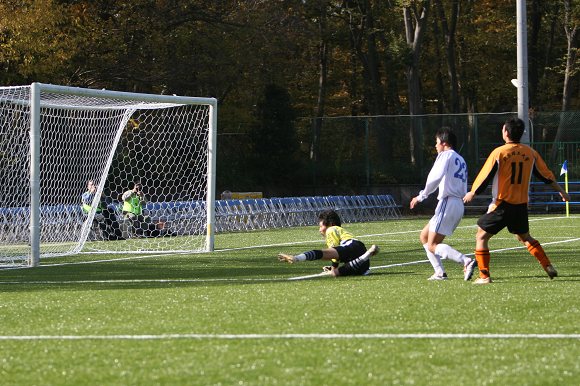 下半場開局第55分鐘,韓國漢陽大學足球隊同樣得到了一次難得了單刀突破機會,甚至已經騙過了我方守門員,但其同樣在最后臨門一腳時將球踢在球門左立柱上彈出界外。
