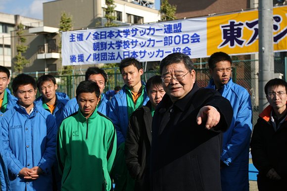 在爭奪第三名的比賽開始之前,我校足球隊總教練金志揚教授總結了上一場比賽的得失,并就本場比賽的對手韓國漢陽大學足球隊的特點進行了認真的分析,金志揚教授主張球隊要想取得更好的成績,想在明年的國內甲級比賽中站穩腳跟,必須進行創新與改革。韓國漢陽大學也好,朝鮮大學也好,其打法與特點都與日本駒澤大學相似,這次比賽大家要有充分的心理準備,要以快治快,以拼治拼,看看自己的比賽節奏和拼搶技術能否與對方看齊,并爭取抓住場上的每一次機會,力爭先發制人,盡量讓對方不適應我們調整后的新節奏,當然這種嘗試打法需要大家統一思想,在場上盡自己最大的努力去跑去拼去搶,不能有絲毫的猶豫,無論最后結果如何,只要大家盡力了,這樣我們就不僅能從對手身上學到足球發展新的理念,而且可以把它與自己的技戰術結合起來。