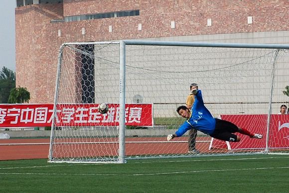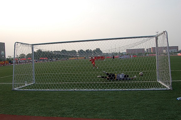 在緊張而又激烈的點球大戰中,我校足球隊率先罰球,且五射五中,而東華大學足球隊雖也三罰三中,但在罰第四輪點球時,罰球隊員高度緊張,猶豫不決,射出點球低平偏正且力道不足,我方守門員王毅判斷準確將球撲出,對方的第五輪罰球已無必要。最終我校足球隊以總比分6:4力克勁敵東華大學,從而在重新奪回大學生足球聯賽冠軍的道路上掃平了一個重要障礙。