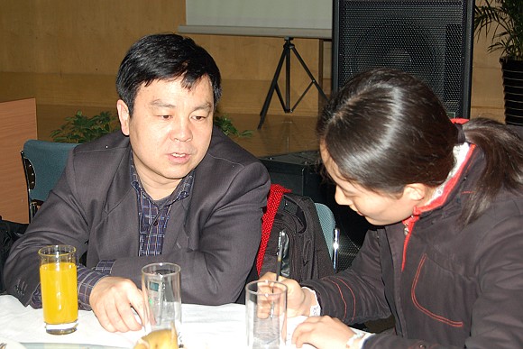 團拜會上首先由北京理工大學黨委副書記、副校長楊賓發言,他首先對多年來上級單位、各類媒體、企業界對北京理工大學足球隊的一貫支持表示感謝!楊賓副書記回顧了北京理工大學足球隊的發展歷程,以及2006年足球隊沖甲的輝煌一刻。楊賓在會上表示,學校將根據中甲聯賽的要求,在伙食上做出比較大的改善,將專門請營養技師為隊員營養配餐,為隊員建造獨立的就餐場所。以保障他們在訓練和高對抗比賽中所需的營養。此外在學習中,學校將根據賽程調整課程,在利用業余時間請學校最好的老師進行文化課的輔導。同時在訓練中加強科學性,把在韓國所學充分延續,以提高訓練效果為主進行有效果的訓練,而不是以訓練時間為標準。他最后強調,希望隊員要有使命感,要有榮譽感,要充分表現出體育回歸教育的理念。關于2007年足球隊征戰中甲的備戰情況,他表示學校各級領導都將會全力支持足球隊的各項工作,同時也希望在足球隊的招商方面能得到社會各界尤其是民族企業的關注。