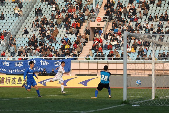 第64分鐘,青島隊獲得一個位置絕佳的任意球機會,青島隊丁偉主罰,球繞過人墻進入球門,青島隊2比0再下一城。