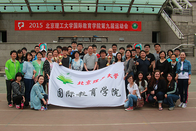2015年4月28日上午八點半,北京理工大學國際教育學院第九屆運動會在學校東操場隆重舉行。國際教育學院院長梅文博、繼續教育學院黨總支書記羅佳、國際教育學院副院長蔣志湘、綜合辦公室主任蔣敏榮、教學辦公室主任李麗珊、學生工作辦公室主任劉崢以及學院全體師生出席了開幕式。