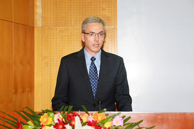 我校常務(wù)副書記趙長祿教授在致辭中對典禮的舉行表示熱烈祝賀。他表示,中國已進(jìn)入經(jīng)濟(jì)快速發(fā)展的黃金時期,亟需高級人才來搭建中外合作的橋梁。我校與康斯坦斯應(yīng)用科學(xué)大學(xué)合作為戴姆勒公司舉辦的EMBA項(xiàng)目以傳授國際上最高道德和法律標(biāo)準(zhǔn)進(jìn)行商業(yè)活動為指導(dǎo)方針,培養(yǎng)了大批具有國際化視野的高層次復(fù)合型精英人才。合作的成功與合作方的大力支持,教職工的辛勤工作和學(xué)員的積極努力密不可分。