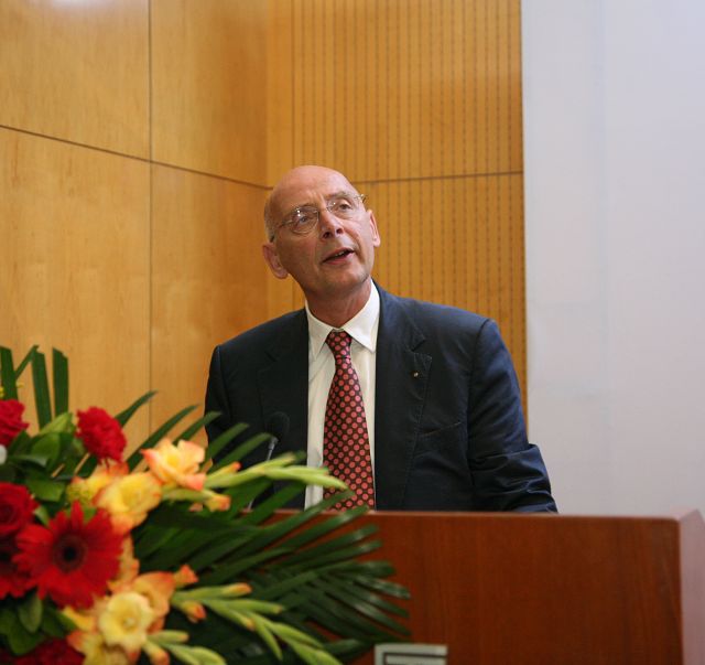 教師代表德國康斯坦茨應用科學大學Josef Wieland教授發言。他告訴與會學員,“合規性與公司治理”項目是培養具有最高職業道德和嫻熟國際商業活動運作規則的高級人才,面對跨國公司合作的全球化,公司需要規范企業和經理人員行為的全球標準,公司治理及合規EMBA項目將有利于這方面的發展。我們學校將進一步加大合作力度,發揮教育資源整合的優勢,為促進跨國公司的本土化,進一步提升公司全球的競爭力,為企業發展和EMBA培訓事業做出新的成績。
