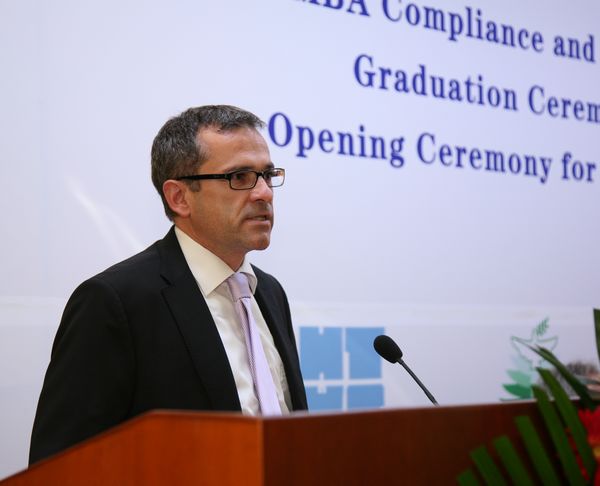 戴姆勒大中華區首席財務官Helmut Ruhl先生對畢業生表示祝賀。他說:這是自己第三次參加EMBA項目的畢業典禮。作為國際企業,戴姆勒公司將多種文化融會成為戴姆勒文化。并將與參加項目的所有員工一道創造企業更好的未來。