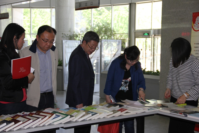 暨2016年“世界讀書日”來臨之際,4月22日上午10點,北京理工大學出版社和圖書館聯合打造的校園文化精品活動——圖書展示在圖書館一層大廳成功舉辦。北京理工大學出版社社長林杰、副社長樊紅亮及部門相關負責人等一行9人光臨圖書館,圖書館館長徐文國、黨總支書記兼副館長鄭焱等圖書館領導會見并進行交流。