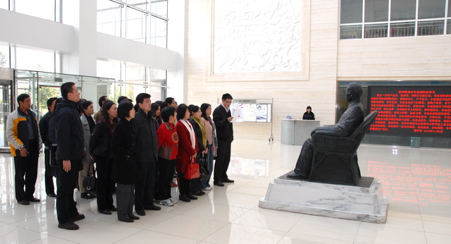 11月6日,圖書館黨總支組織全體黨員開展了創先爭優主題黨日活動?;顒影膫€環節:銘記歷史,勿忘使命——參觀中國人民抗日戰爭紀念館;升華思想,堅定信念——舉行新黨員入黨宣誓暨老黨員重溫入黨誓詞儀式;回溯源頭,傳承命脈——參觀徐特立紀念展;莊嚴承諾,永葆先進——舉行黨員創先爭優承諾儀式。