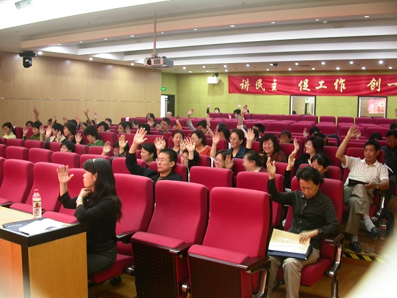這次職工大會暨工會會員大會是在“十一五”的開局年、“985工程”建設和迎接本科教學評估走好第一步的關鍵時刻召開的一次重要會議。它既是一個團結、民主、集思廣義的群英會,也是一個振奮精神、創造北京理工大學圖書館輝煌的誓師會。它必將在北京理工大學圖書館的發展史上產生重大而深遠的影響。各位代表都決心以這次大會為契機,高舉鄧小平理論偉大旗幟,落實“三個代表”、科學發展觀的重要思想,抓住機遇,在學校黨委和行政的領導下,團結、求實、創新,搞好圖書館的各項工作,為提升我校總體教學、科研水平做出自己的貢獻。團結起來,為建設國內一流的高校圖書館而努力奮斗!