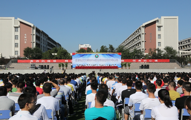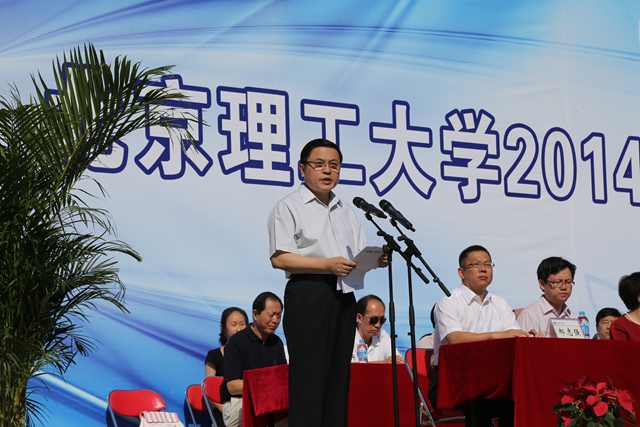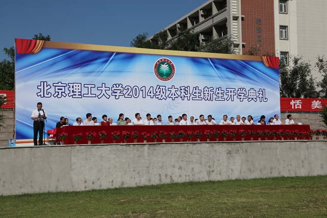 9月4日上午,北京理工大學2014——2015學年開學典禮在良鄉校區體育場舉行。北京理工大學黨委書記郭大成、校長胡海巖,兩院院士、原校長王越,校領導趙平、楊蜀康、楊樹興、趙顯利、李和章、陳杰,北京市教學名師李鳳霞教授、羅森林教授、崔建霞教授,學校各學院、各職能部門負責人,以及北京市房山區區長助理高培軍出席典禮。全體2014級本科新生及部分新生家長參加了典禮。典禮由學校辦公室主任郝志強主持。