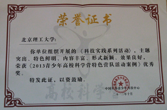 近日,中國科學技術協會公布2013高校科學營獲獎的先進單位,我校獲得《2013青少年高??茖W營特色營隊活動案例》優秀獎。