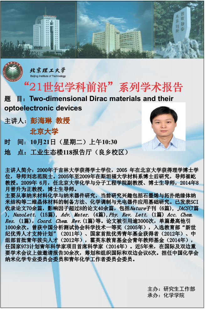 化學(xué)學(xué)院10月21日學(xué)術(shù)報(bào)告預(yù)告