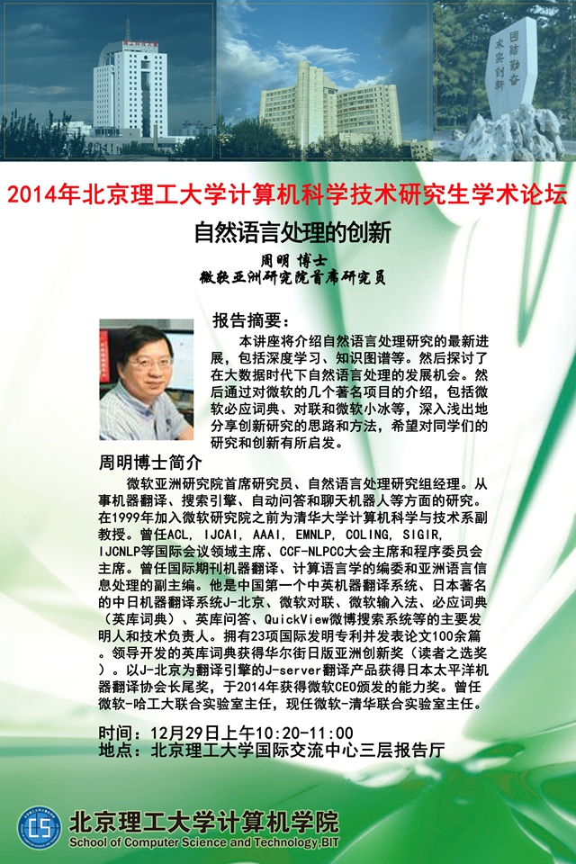 2014年北京理工大學計算機科學技術研究生學術論壇大會報告預告-2