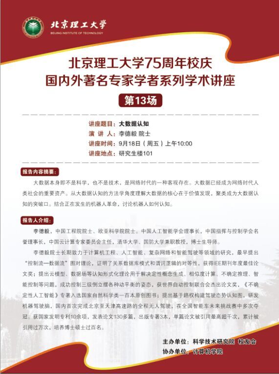 北京理工大學75周年校慶國內外著名專家系列講座:大數據認知
