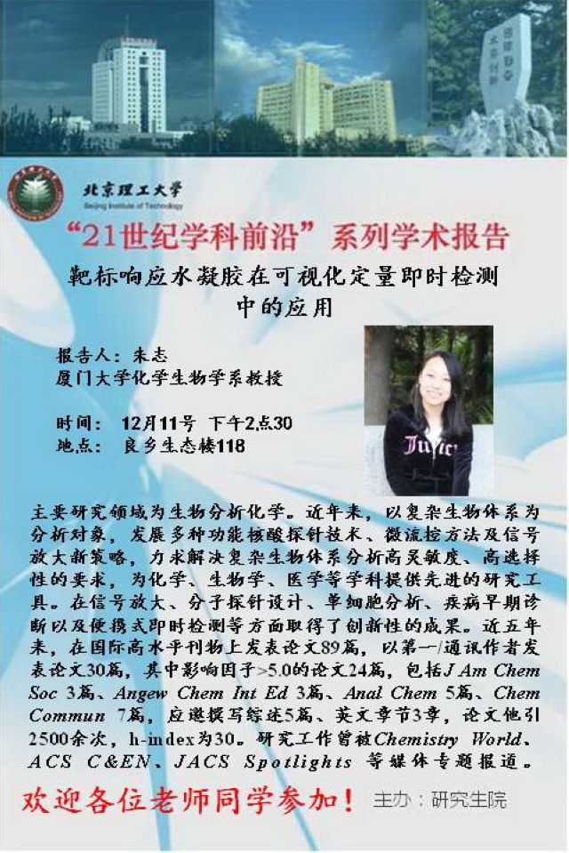 【化學學院】“21世紀學科前沿”朱志教授學術報告通知