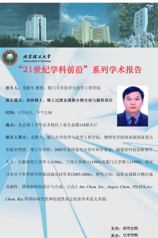 【化學學院】“21世紀學科前沿”龍臘生教授學術(shù)報告通知