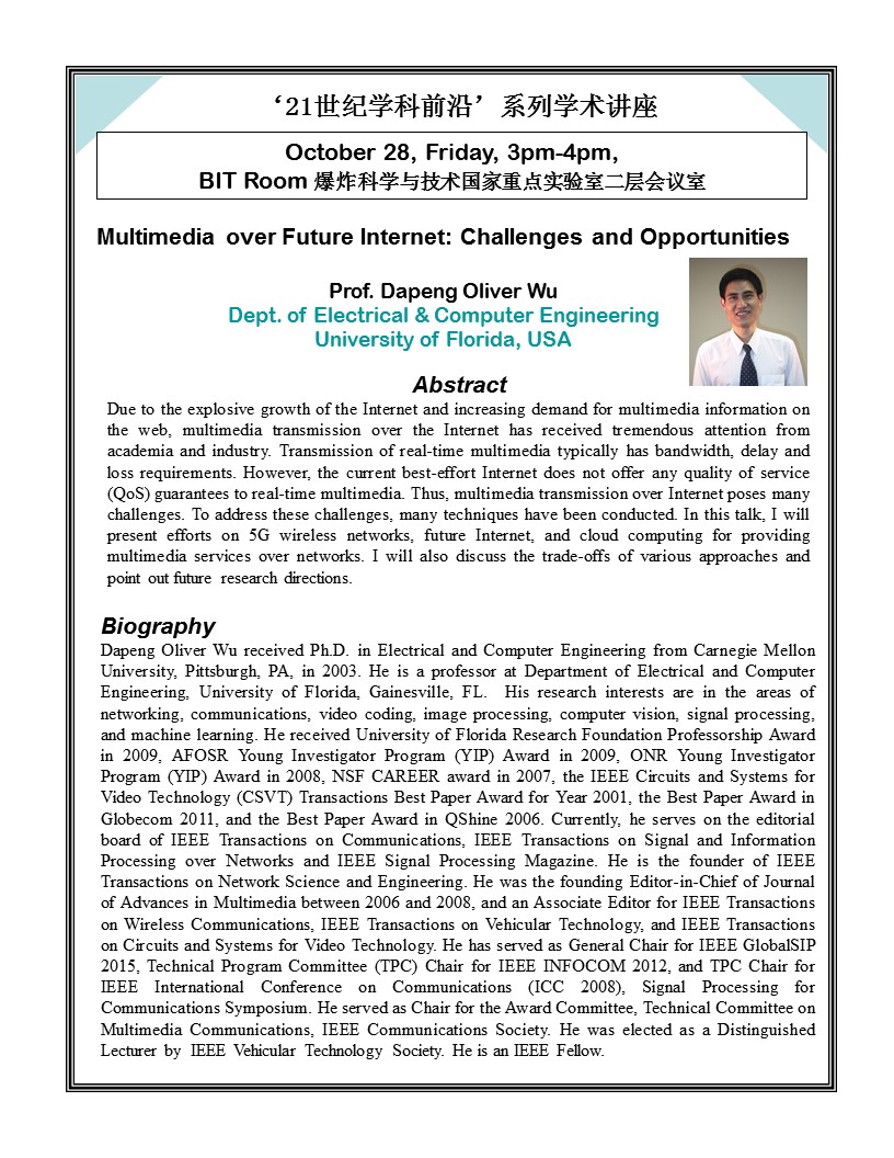 【機電】“21世紀學科前沿”系列學術講座—Multimedia over Future Internet: Challenges and Opportunities