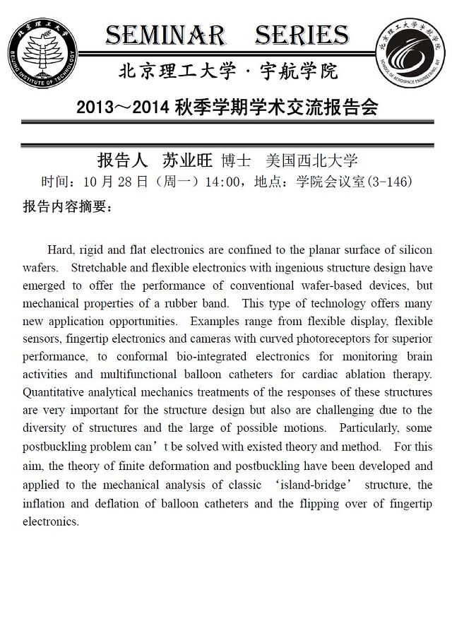 宇航學(xué)院10月28日學(xué)術(shù)報(bào)告預(yù)告