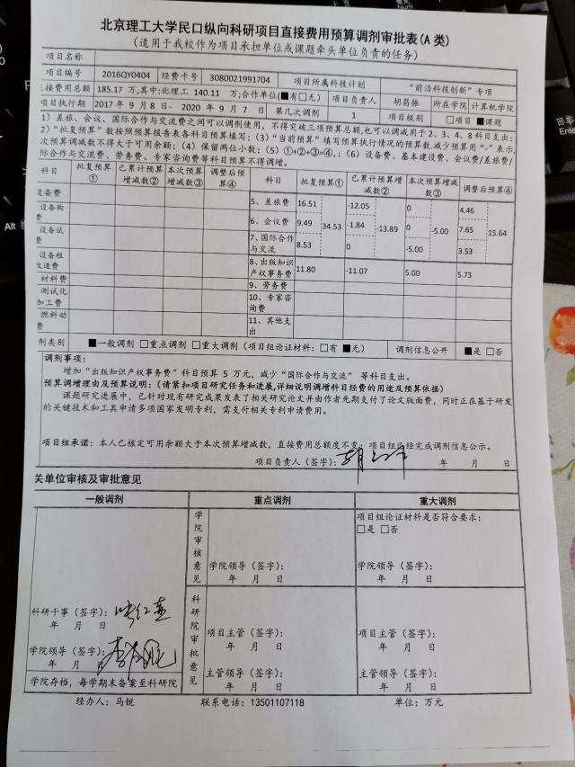 項目2016QY0404預算調劑(一般)