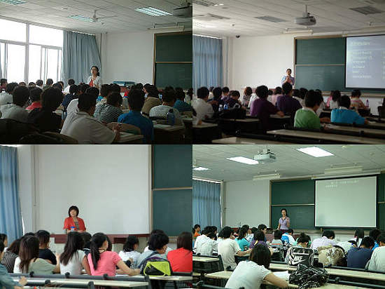 大學英語是本科生的一門基礎必修課,包括《大學英語讀寫譯》課程、《大學英語視聽說》課程和《專項英語(十余類,近30門)》 課程。自2007年9月以來,大學英語教學部40余名教師,承擔著良鄉(xiāng)校區(qū)大一、大二兩個年級非英語專業(yè)6000多名本科生的英語教學任務。每位教師都同時承擔2-3門課程,每周授課學時達10-12學時。教師們家居北京地區(qū)四面八方,教學任務繁重,往返上課非常辛苦。但每位教師為了教學,克服許多困難, 認真為學生上好每一堂課,07級、08級學生大學英語國家四級通過率分別為91.47%和91.13%,這些成績的取得與每位教師默默無私的付出是分不開的。