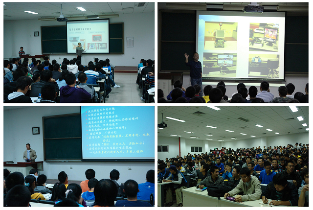 10月14日,邀請張忠廉、洪瑾、孫華飛、史慶藩、張婷、蘇偉、呂桂琴、劉穎、馬志峰等9名科技創新指導經驗豐富的教師在良鄉校區進行專題講座。通過講座,引導學生參與科技創新活動,激發學生參加創新活動的興趣,讓學生知道 "做什么"、"如何做"、"做到什么程度"。