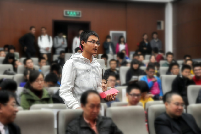 創新指導專家機電學院羅慶生教授介紹多年的指導的心得和體會,并以上屆獲“教育部我最喜愛的十件創新作品”之首的國家級創新項目為實例,鼓勵在場同學,“我校本科生不僅能做,而且做得很好”。大二年級何興平同學發表了激情揚溢的演講,向在座同學證明“有了夢想,只要努力,就能實現”。
