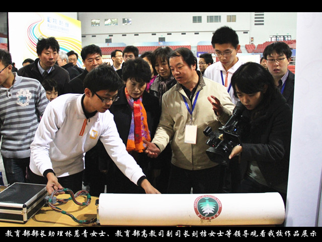 代表我校參加大會的大學生課外科技創新作品——“狹窄空間維修設備搭載平臺”(指導教師:羅慶生、韓寶玲;項目組成員:王小龍、馮達、莫洋、白亞群、任峻峰、馬慧茹、趙曉瑞)作品不辱使命,取得了我校參加年會歷史上的新突破:榮獲了由學生代表投票評選的“我最喜愛的項目”稱號,且排名第一,同時該項目還獲得了由專家組考察評選的“十個優秀創新項目”稱號。該作品本次年會上勇奪雙冠,算起來是羅慶生教授和韓寶玲教授指導作品參加“大創年會”的五連冠。