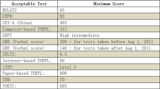 2.參加英語(yǔ)課程學(xué)習(xí)的沒(méi)有英語(yǔ)成績(jī)要求。參加專(zhuān)業(yè)課程學(xué)習(xí)的須具有并達(dá)到下列英語(yǔ)成績(jī)要求之一: