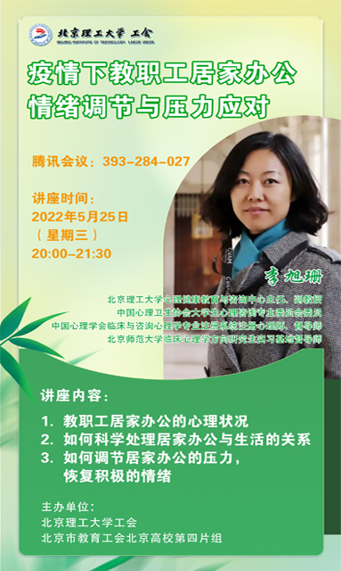 講座預告?>?疫情下教職工居家辦公情緒調節與壓力應對