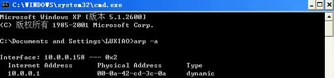 對于教學區用戶來說,對應于本網段網關的合法物理地址(MAC地址)都應該為如圖所示的00-0a-42-cd-3c-0a。如果顯示不是這個MAC地址,那么就是本網段有機器中病毒了。可以記錄下這個MAC地址,電話68914833報修,本中心會臨時關閉這個MAC地址對應的網口,保證本網段的正常上網。