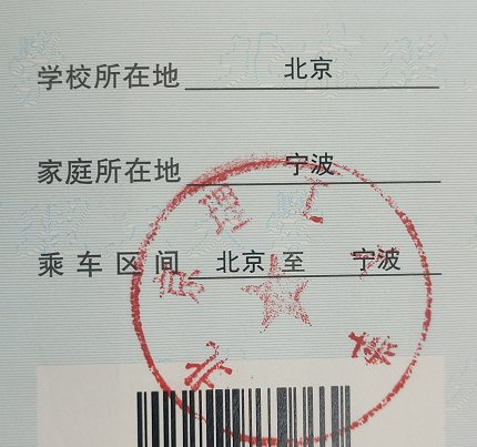 如圖所示,乘車區間上需加蓋相關有效印章。如學生證乘車區間沒有加蓋公章,請將學生證交到學生事務大廳,公章加蓋辦理時間需要至少三個工作日,請提前預留出行時間。