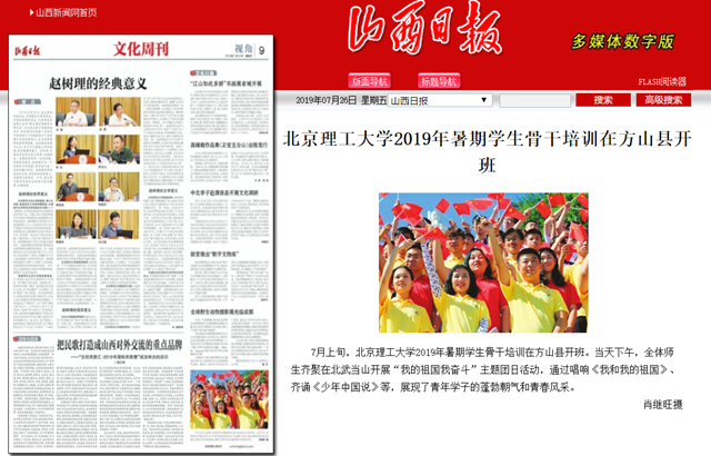 北京理工大學2019年暑期學生骨干培訓在方山縣開班