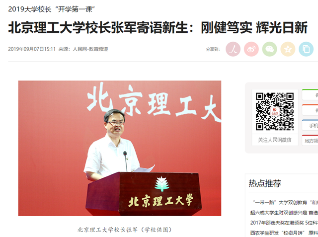 編輯:吳楠 審核:王征 閱讀次數:原文標題:北京理工大學校長張軍寄語新生:剛健篤實 輝光日新