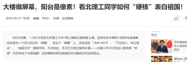 編輯:吳楠 審核:王征 閱讀次數(shù):原文標題:大樓做屏幕,陽臺是像素!看北理工同學如何“硬核”表白祖國!