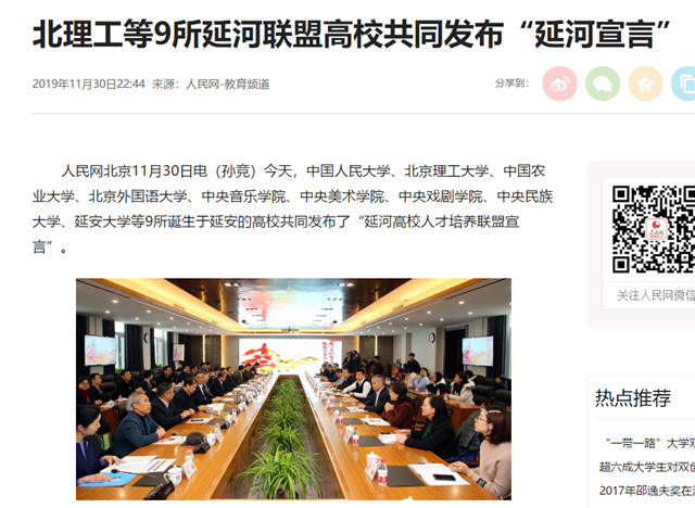 編輯:吳楠 審核:王征 閱讀次數:原文標題:北理工等9所延河聯盟高校共同發布“延河宣言”