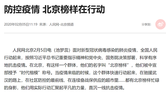 防控疫情 北京榜樣在行動