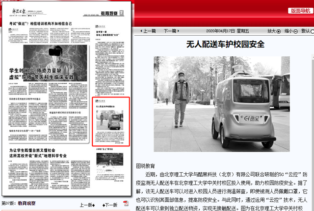 編輯:吳楠 審核:劉曉俏 閱讀次數:原文標題:無人配送車護校園安全