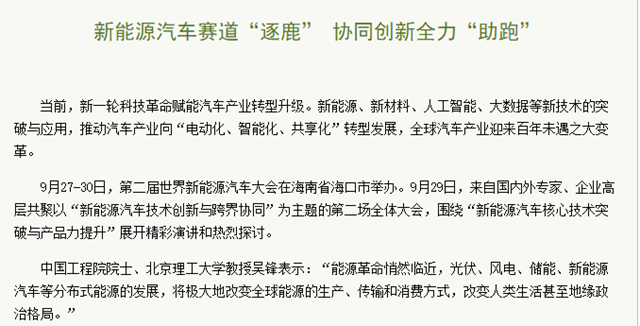 編輯:吳楠 審核:劉曉俏 閱讀次數:原文標題:新能源汽車賽道“逐鹿” 協同創新全力“助跑”
