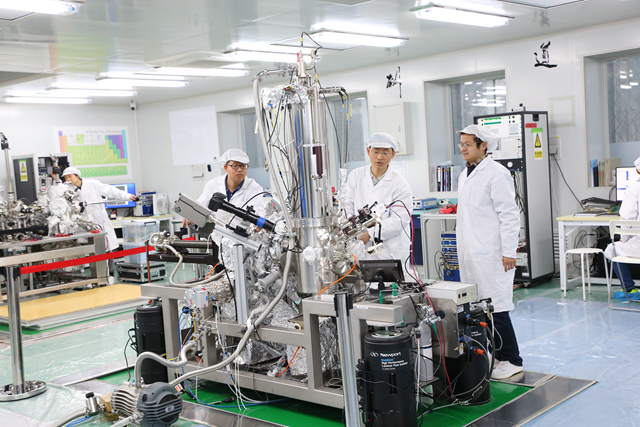 經過一年的努力,中心在2019年底投入試運行,面積約550平方米,建有材料制備表征室、標準器件制備室、精密器件制備室、器件性能評價室、器件集成展示室等5個功能實驗區,具有發光器件、超材料、光伏器件、自旋量子器件等多套全鏈條制備研究系統,配備11臺(套)價值超過2620萬元的各類高端儀器,成為繼分析測試中心、先進材料實驗中心之后學校又一高水平大型實驗平臺。