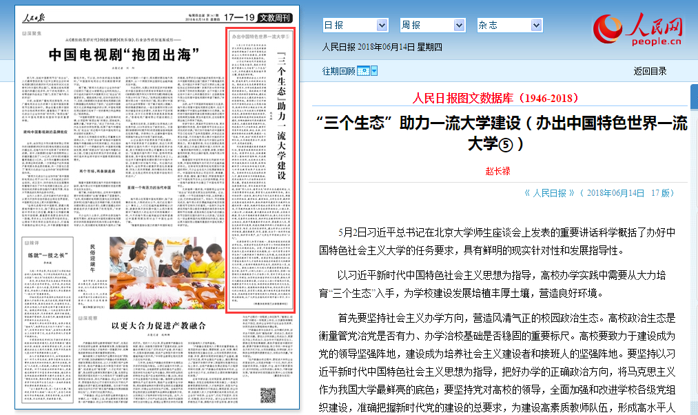 【人民日報】趙長祿:“三個生態”助力一流大學建設