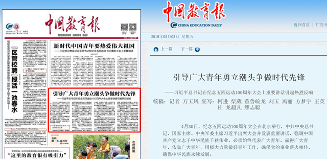 【中國(guó)教育報(bào)】引導(dǎo)廣大青年勇立潮頭爭(zhēng)做時(shí)代先鋒