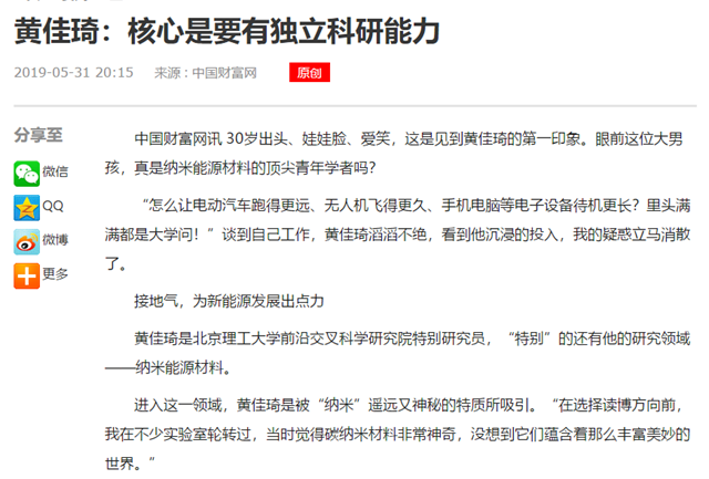 黃佳琦是北京理工大學(xué)前沿交叉科學(xué)研究院特別研究員,“特別”的還有他的研究領(lǐng)域——納米能源材料。