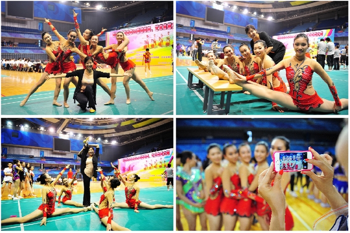 “臺上一分鐘,臺下十年功。”華麗轉身的背后是教練和隊員們汗水的澆注。隊員們的每一套動作需要長時間地去抓細節,為了做到完美,要一點一點地對著鏡子去反復練習。在不耽誤學業的情況下,隊員們要保證3-6個小時的排練時間,減肥在這些隊員中永遠不是問題,因為在高強度的排練下體重會自然下降。訓練初期,由于時間比較緊張,排練的場地無法保障,為了保證訓練時間,隊員們便在籃球場等地練劈叉、練大跳,硬邦邦的塑膠地一次次地考驗著隊員們的意志,渾身的淤青也沒有阻擋他們埋頭訓練的決心。