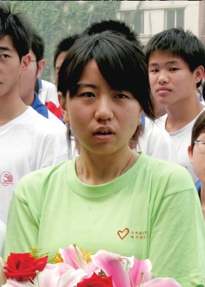 李菊是北師大教育學(xué)院2005級(jí)本科生,來自北川羌族自治縣,在“5·12”特大地震中,她有16位至親遇難。在災(zāi)難面前她堅(jiān)強(qiáng)面對(duì),積極投入災(zāi)后援助工作,積極為家鄉(xiāng)重建做準(zhǔn)備。她熱心公益,積極參加奧運(yùn)志愿服務(wù)工作,工作細(xì)致、盡職盡責(zé)。在奧運(yùn)會(huì)閉幕式上,作為12名志愿者代表之一,她走進(jìn)鳥巢,接受新當(dāng)選的運(yùn)動(dòng)員委員會(huì)委員獻(xiàn)花。