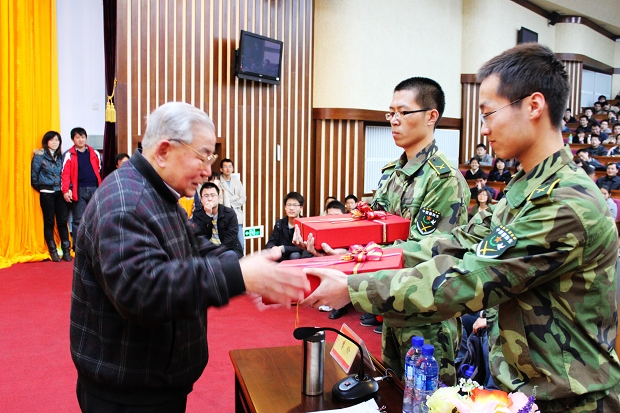 講座最后,國(guó)防生代表向李倫將軍獻(xiàn)上了寫滿同學(xué)們簽名的對(duì)聯(lián),向老將軍致敬,立志獻(xiàn)身國(guó)防事業(yè)。在全場(chǎng)觀眾長(zhǎng)時(shí)間的熱烈掌聲中,本場(chǎng)講座成功的落下了帷幕。