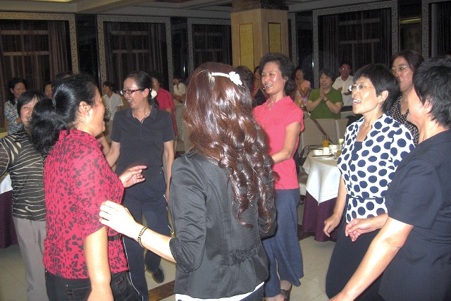 延安大學專門舉辦了歡迎晚宴招待北理工女教授代表團。學生處副處長馬曉輝表演了“藍肚肚手巾”等好幾首地道的陜北名歌。我校的女高音高瑋玲副教授演唱了“南泥灣”。他倆一起合唱了“敖包相會”,精彩的表演獲得了陣陣熱烈掌聲。來自兩校的女教授們相談甚歡,親若姐妹。在延安人大代表女教授盧忠瑾帶領下,大家扭起陜北大秧歌,情不自禁地載歌載舞,盡情展示女教師的才藝,美麗,溫馨、和諧的氣氛使兩校的女教授難以忘懷。晚宴在“同一首歌”和“難忘今宵”的歌聲中結束。