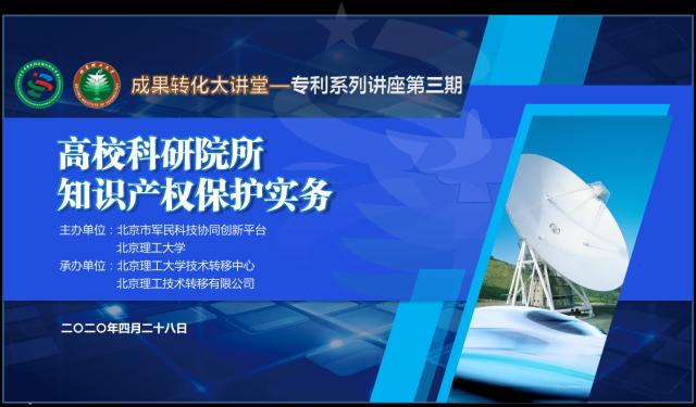 “成果轉化大講堂”——專利系列講座由北京市軍民科技協(xié)同創(chuàng)新平臺和北京理工大學技術轉移中心共同策劃,結合《關于提升高等學校專利質(zhì)量 促進轉化運用的若干意見》等文件精神,邀請業(yè)內(nèi)資深專家圍繞專利“高質(zhì)量創(chuàng)造、高效益運用、高標準保護、高水平管理”做精彩分享,助力軍民科技協(xié)同創(chuàng)新和科技成果轉移轉化。