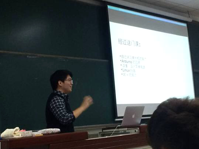 趙家樑被同學們稱為“大神”,并不僅僅是出于對他優異成績的“膜拜”,更重要的是對他帶領大家共同在學習上“奔小康”的欽佩。 單片機操作是各種科技創新活動必備的基礎知識,不少同學都有提前于教學計劃學習的需求。作為BIT機器人創新基地科技部部長的趙家樑,系統自學并結合實踐掌握了單片機的相關知識。看到同學們的學習需求,趙家樑就自己辦起了單片機講座,每周一堂課,一學期9次課,而且他還給自己的單片機講座添加了不少有趣、新鮮的元素,“我把自己的個人主頁拿出來,給大家講怎么搭建服務器,怎么用服務器離線下載,還把投影儀直接連到單片機上,用單片機給大家放幻燈片”。生動有趣的講座,不僅得到低年級同學的歡迎,甚至還有高年級學長跑來聽課。