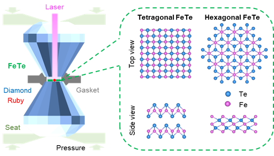 圖1. 極端高壓下的二維t-FeTe和h-FeTe。